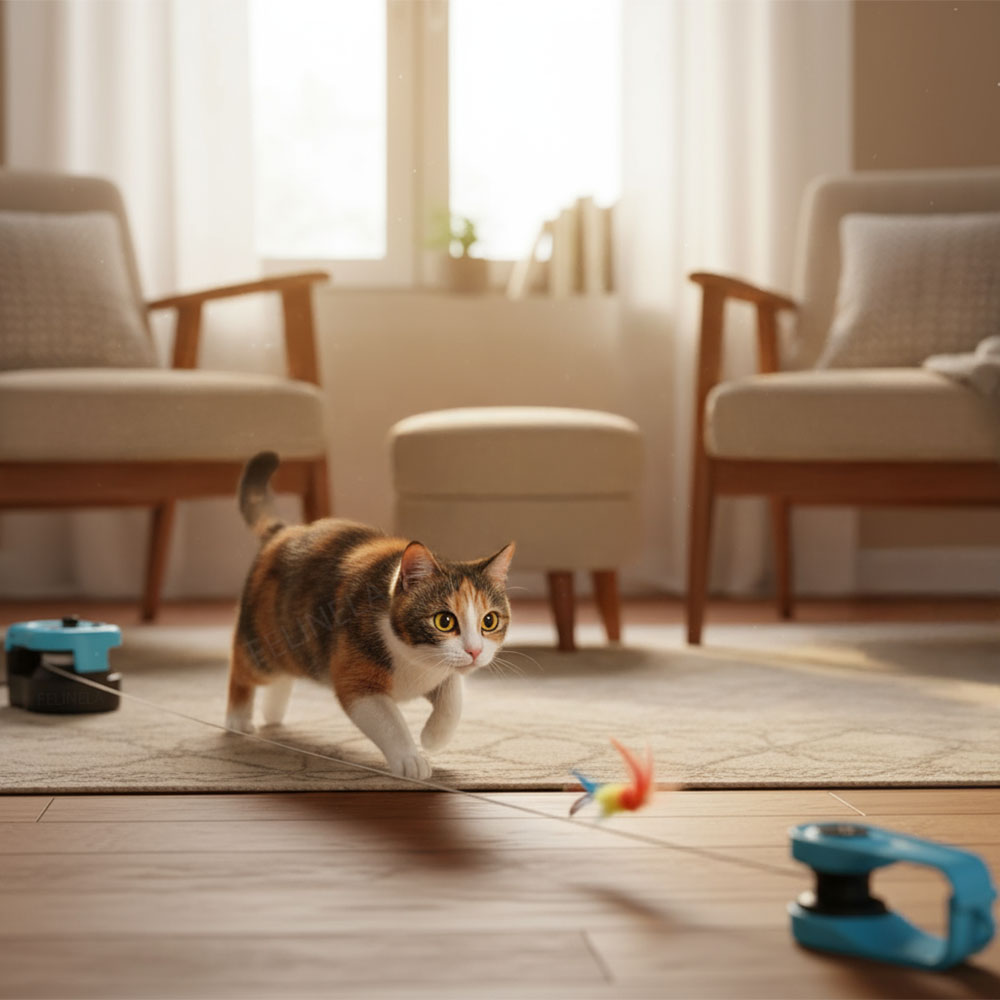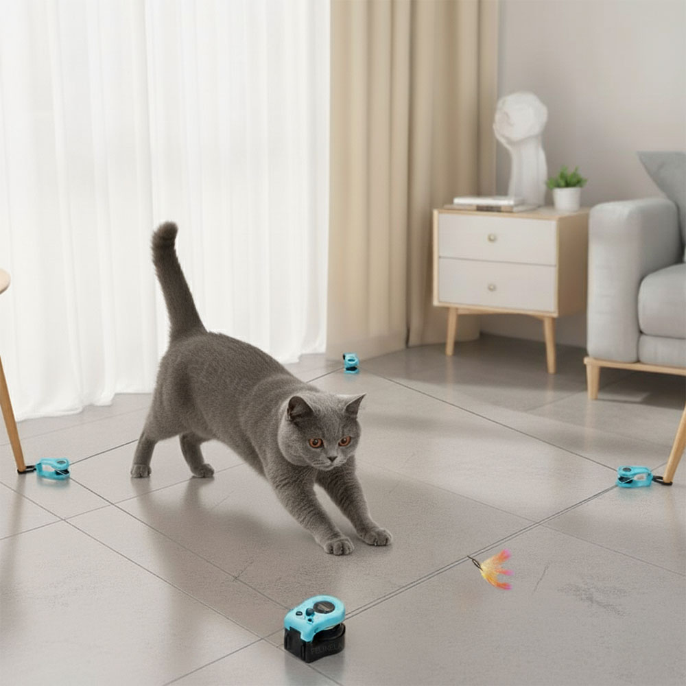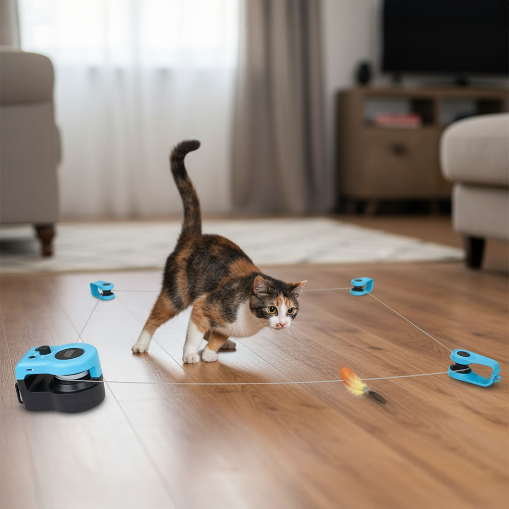 Lovecká dráha pro kočky HunterLoop promění běžný byt v prostor, kde může kočka přirozeně lovit. Díky chytrému pohybu provázku s návnadou reaguje instinktivně – běží, skáče a soustředí se na cíl. Nejde o další myšku, kterou odloží po minutě, ale o systém v pohybu, který obvykle udrží pozornost déle než běžné hračky. Pro vás to znamená klidnějšího a vyrovnanějšího mazlíčka a menší riziko poškozeného nábytku doma.
